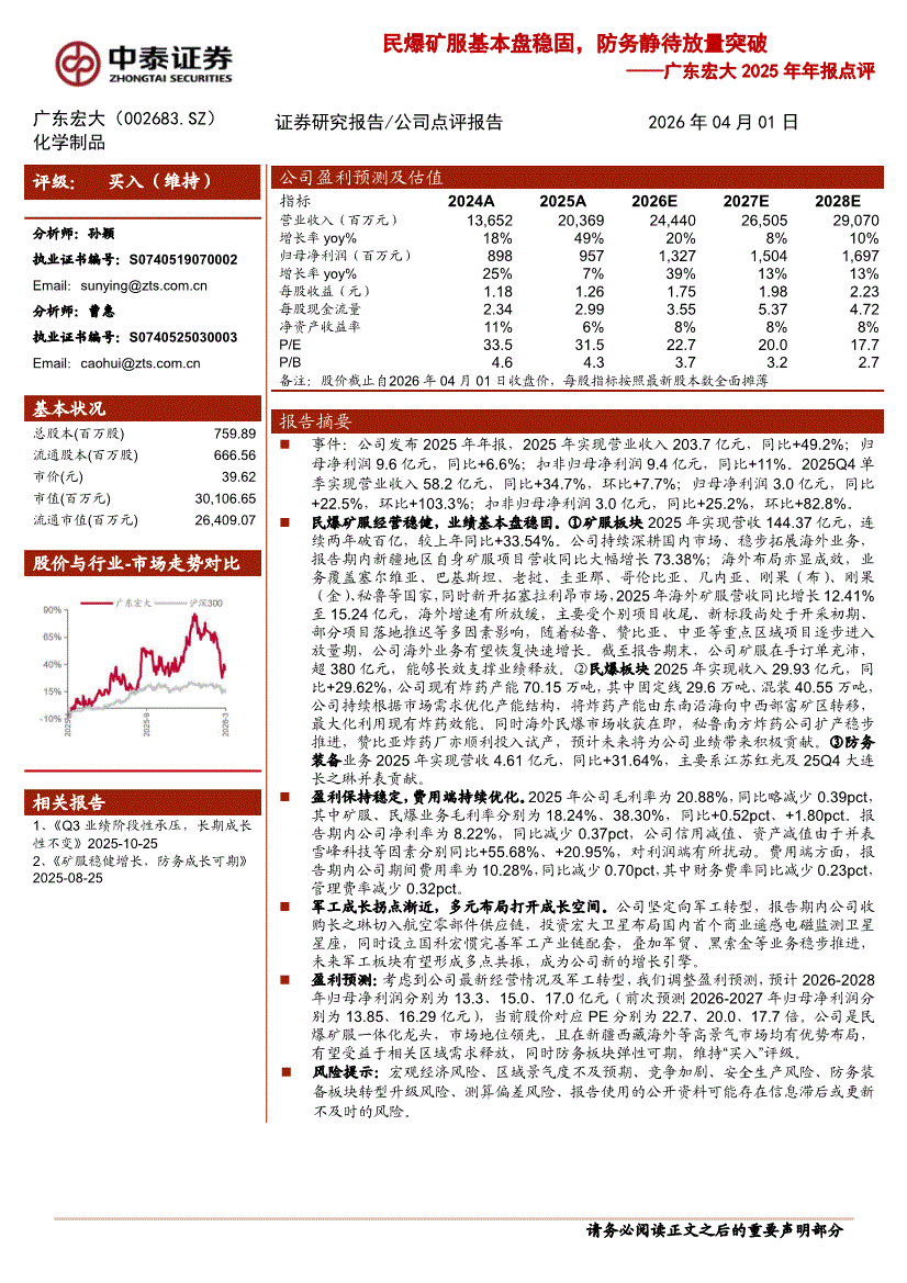广东宏大:中泰证券-广东宏大-002683-2025年年报点评:民爆矿服基本盘稳固,防务静待放量突破-260401