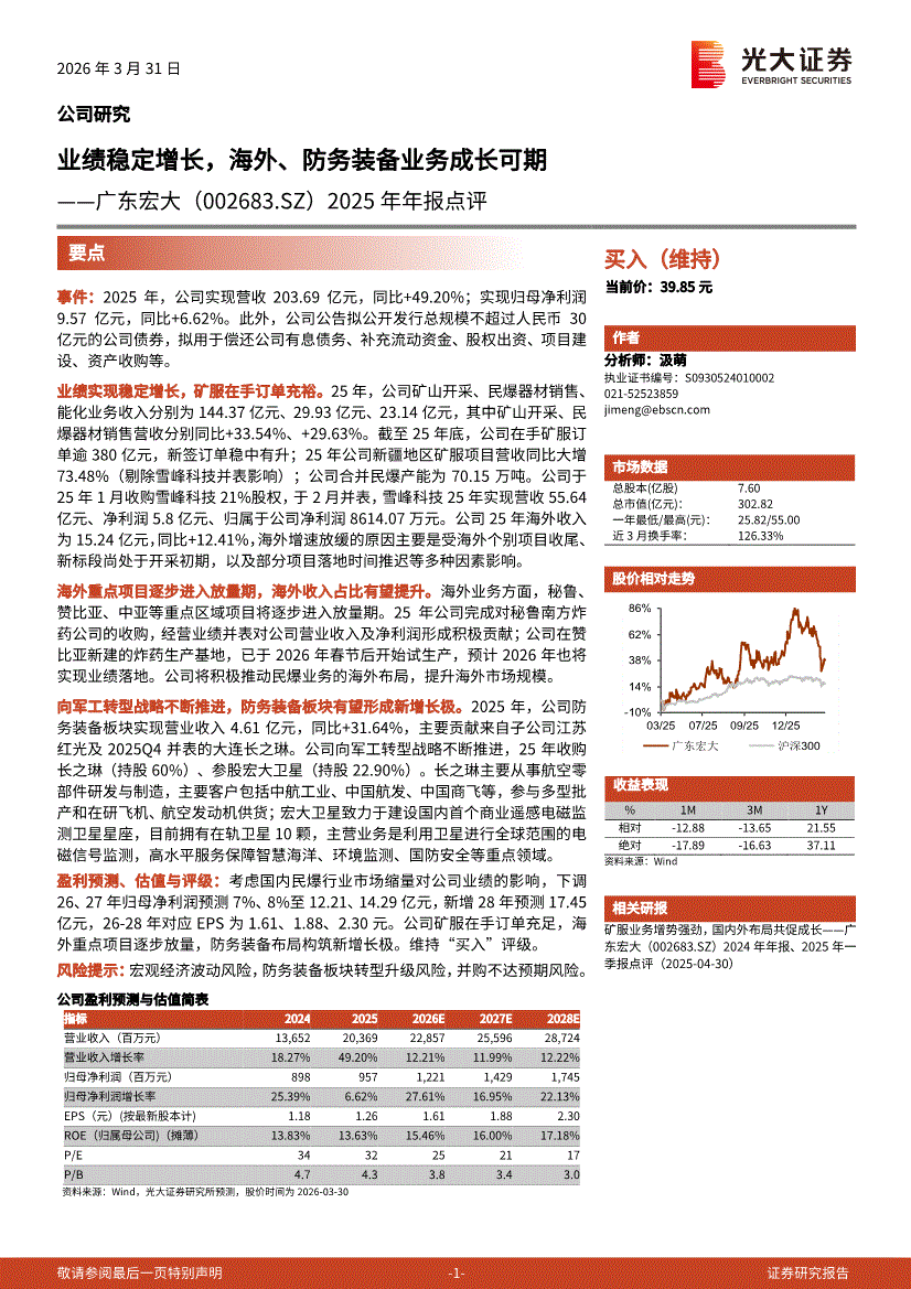 广东宏大:光大证券-广东宏大-002683-2025年年报点评:业绩稳定增长,海外、防务装备业务成长可期-260331