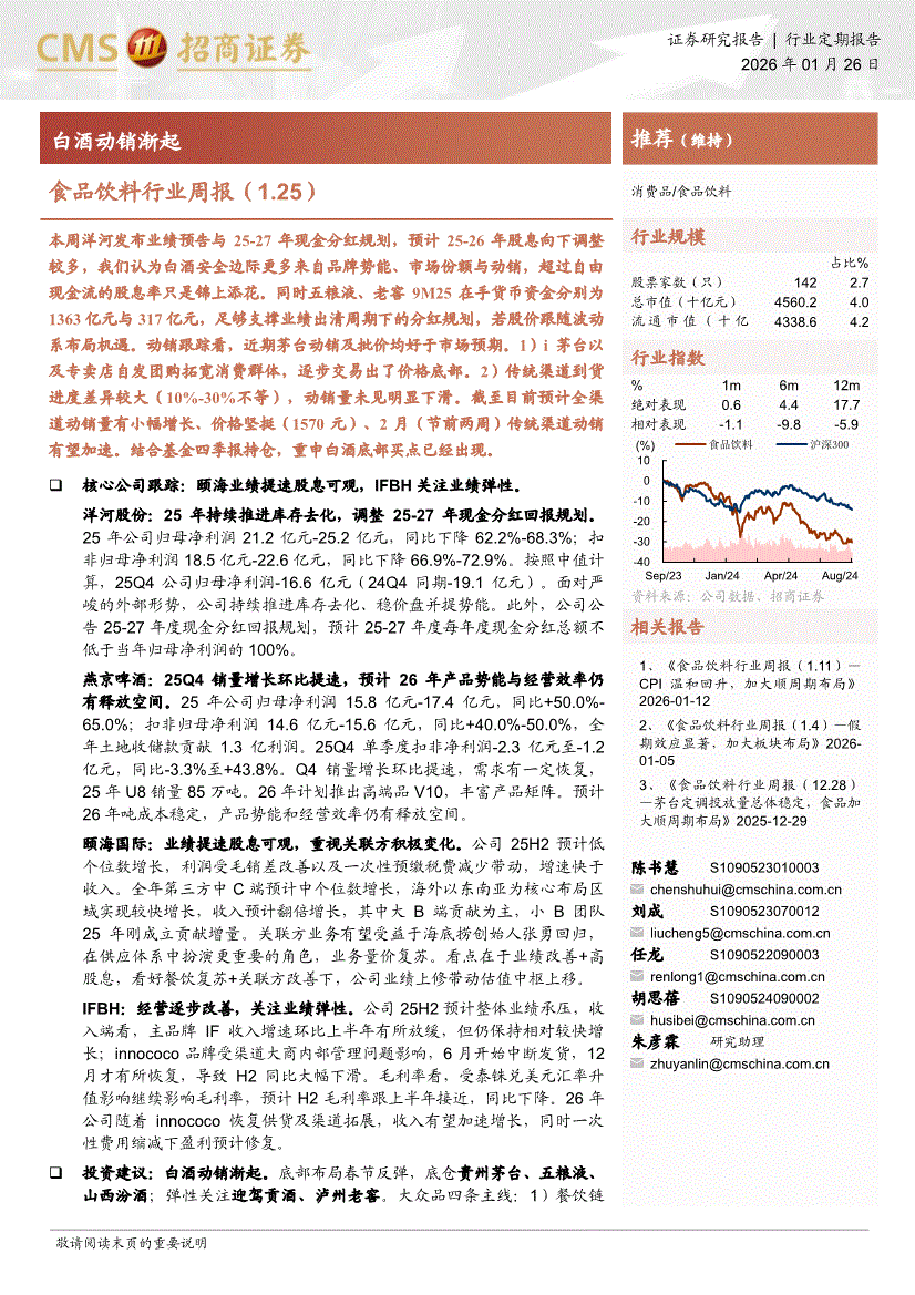 食品饮料行业:招商证券-食品饮料行业周报:白酒动销渐起-260126