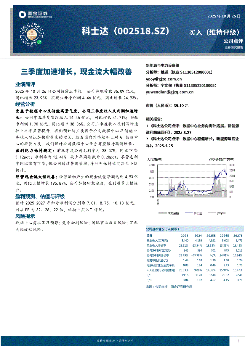 科士达:国金证券-科士达-002518-三季度加速增长,现金流大幅改善-251026