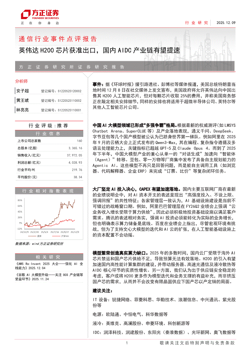 通信行业:方正证券-通信行业事件点评报告:英伟达H200芯片获准出口,国内AIDC产业链有望提速-251209