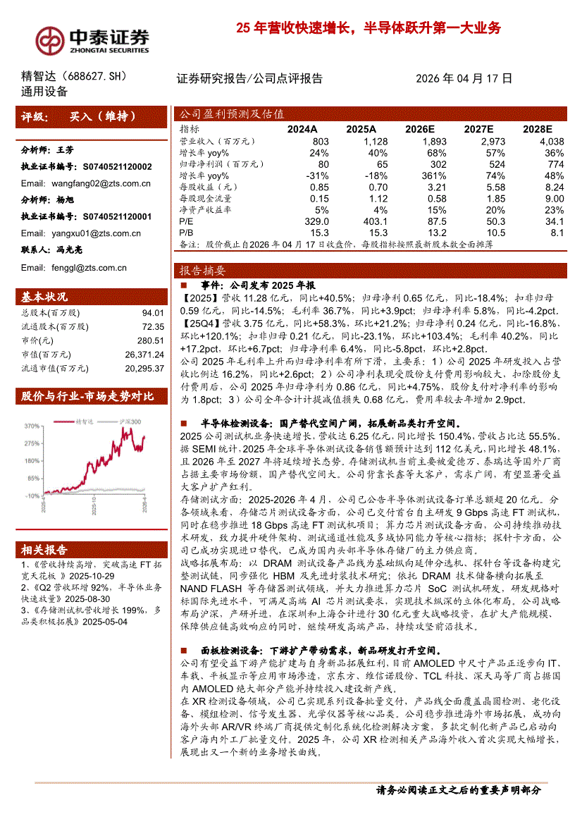 精智达:中泰证券-精智达-688627-25年营收快速增长,半导体跃升第一大业务-260417