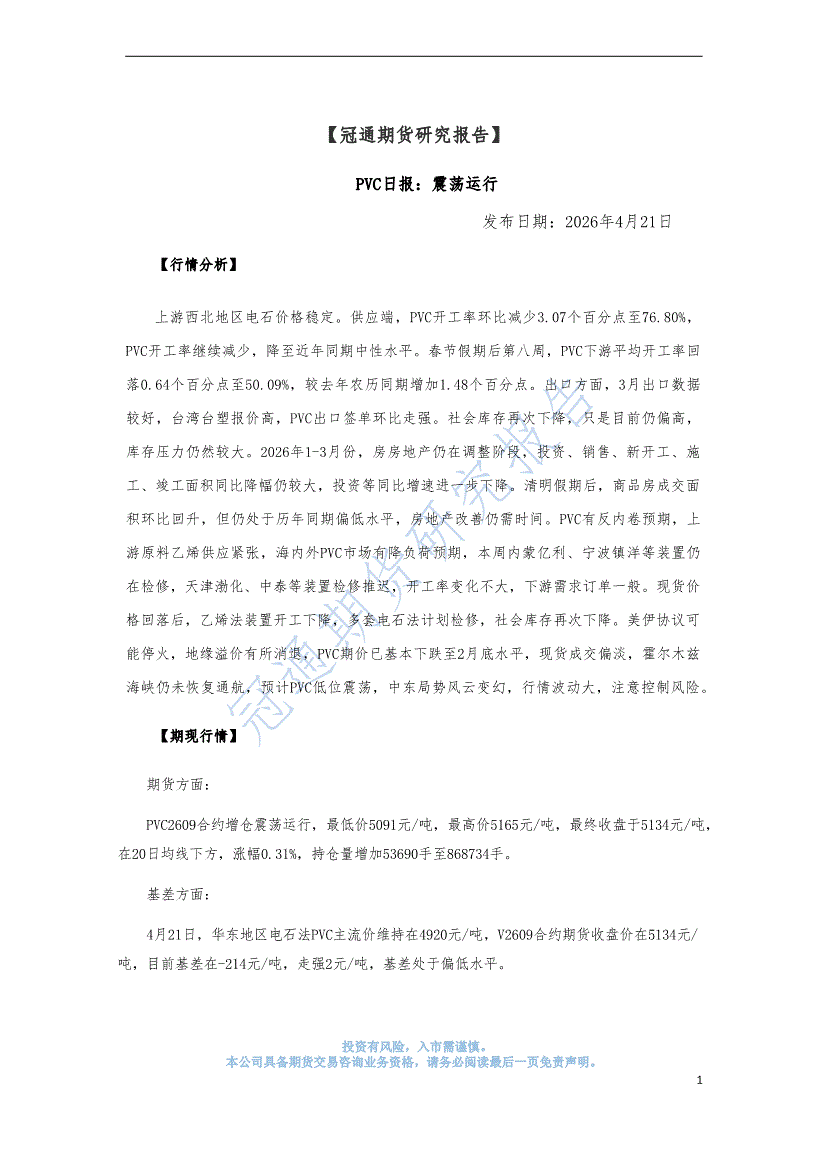 冠通期货-PVC日报:震荡运行-260421