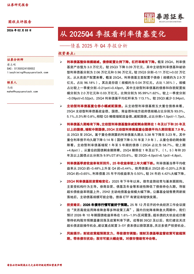 华源证券-债基2025年Q4季报分析:从2025Q4季报看利率债基变化-260203