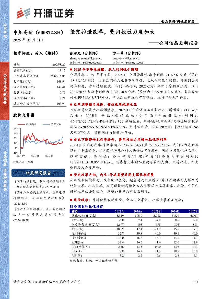 中炬高新:开源证券-中炬高新-600872-公司信息更新报告:坚定推进改革,费用投放力度加大-250831