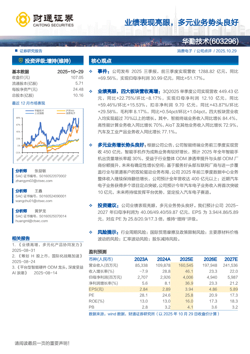 华勤技术:财通证券-华勤技术-603296-业绩表现亮眼,多元业务势头良好-251029