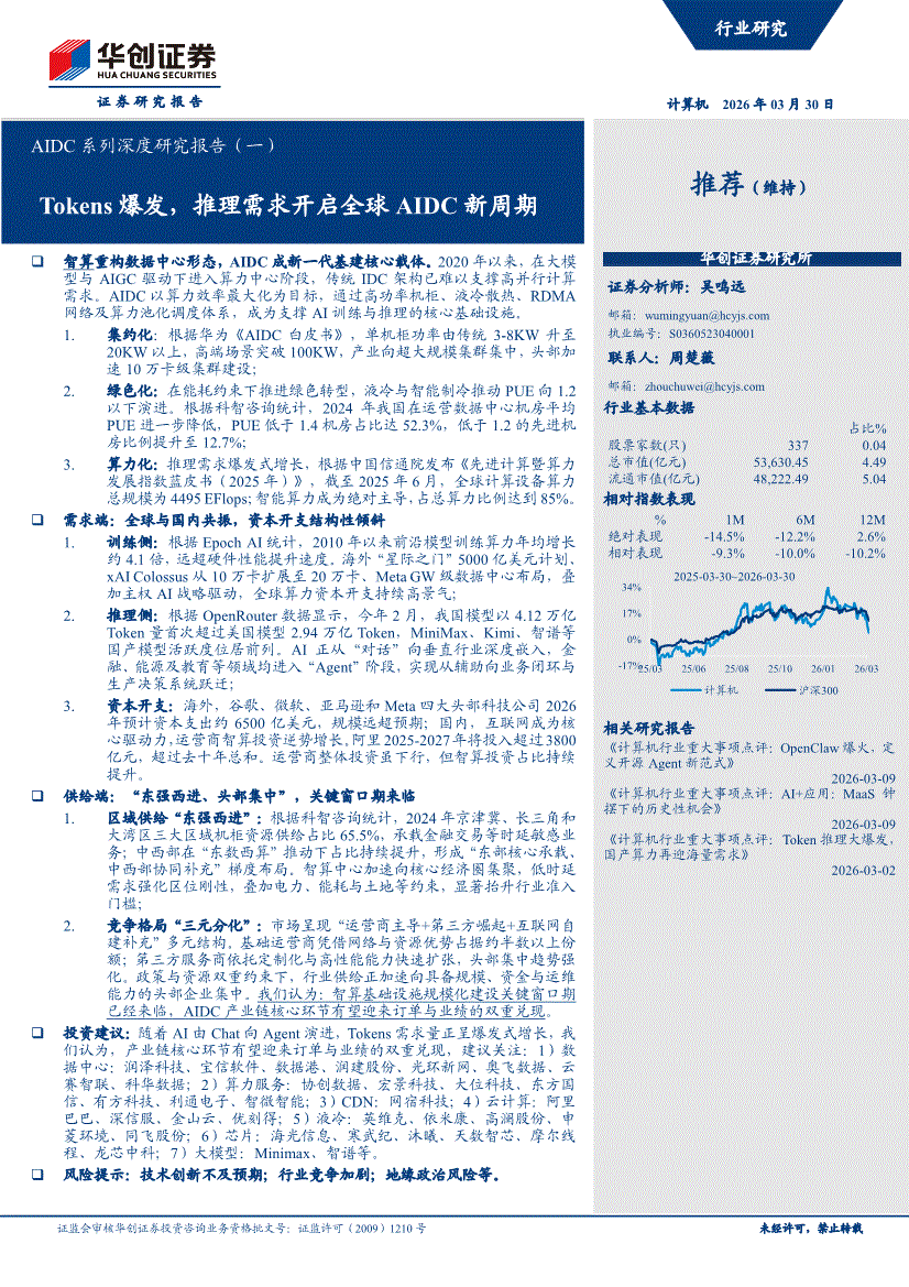 计算机行业:华创证券-计算机行业AIDC系列深度研究报告(一):Tokens爆发,推理需求开启全球AIDC新周期-260330