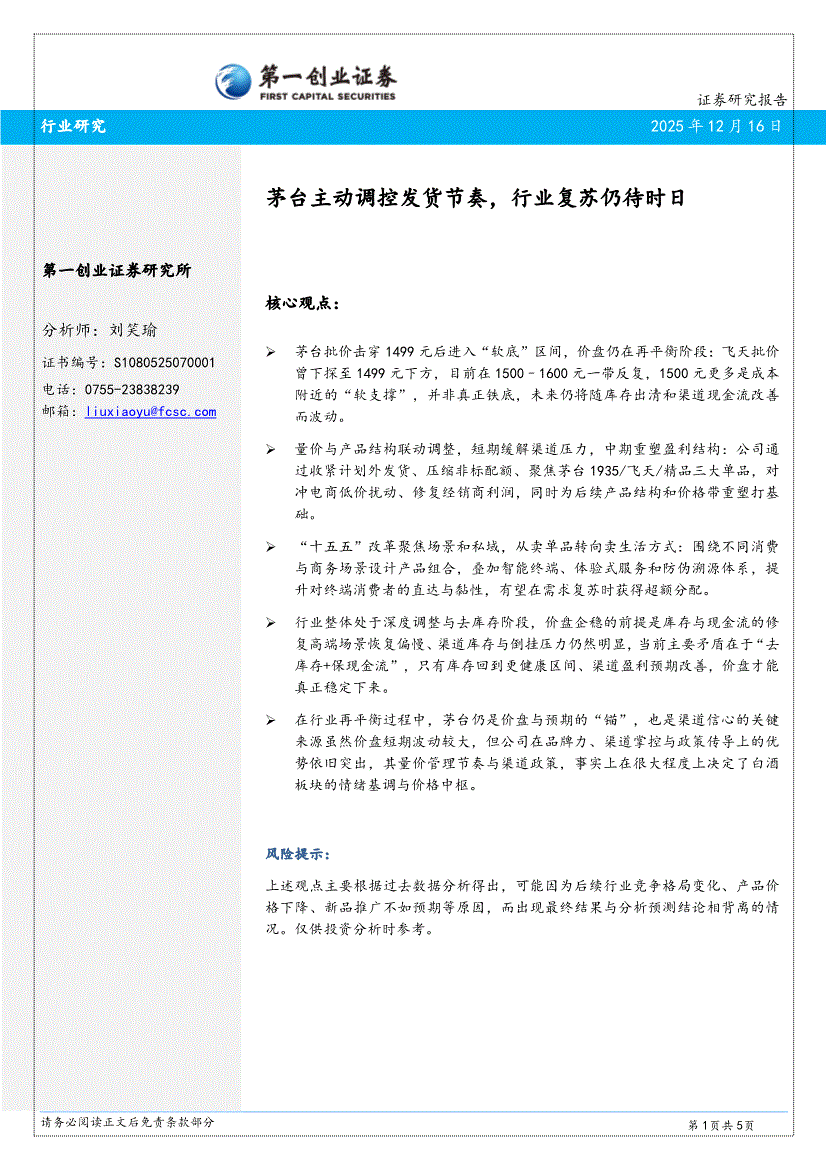 白酒行业:第一创业-白酒行业:茅台主动调控发货节奏,行业复苏仍待时日-251216