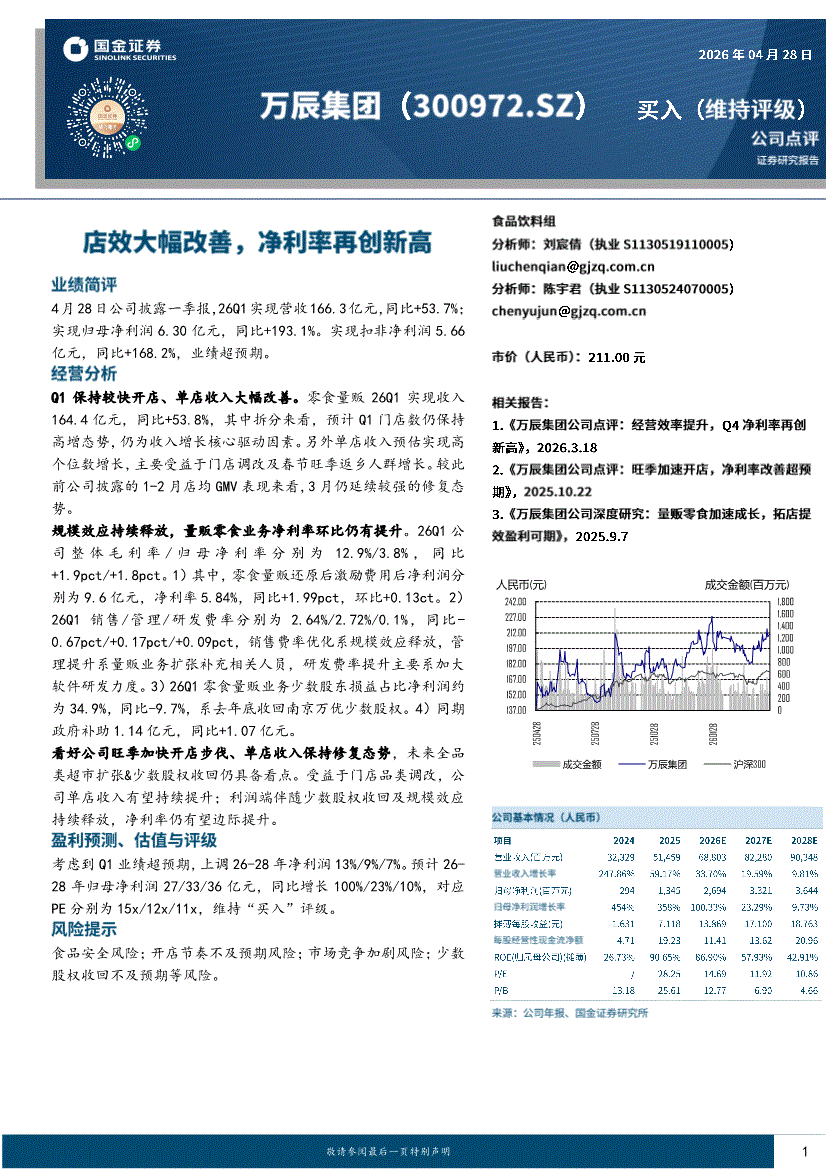 万辰集团:国金证券-万辰集团-300972-店效大幅改善,净利率再创新高-260428