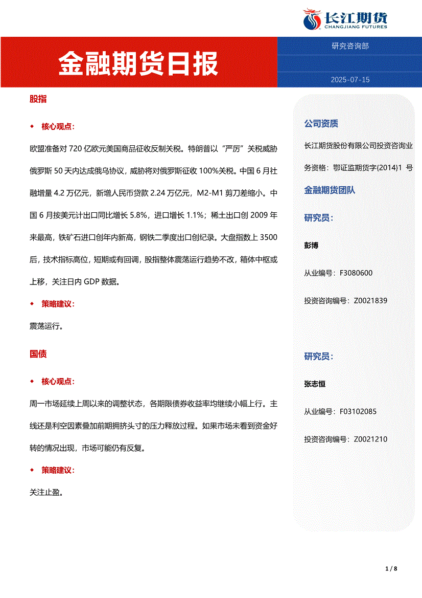 长江期货-股指或震荡加剧,国债或震荡运行-250818