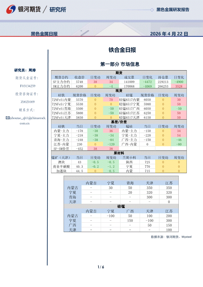 银河期货-铁合金日报-260422