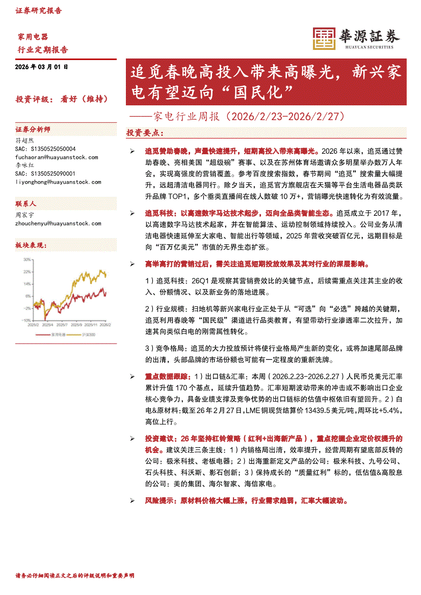 家电行业:华源证券-家电行业周报:追觅春晚高投入带来高曝光,新兴家电有望迈向“国民化”-260301