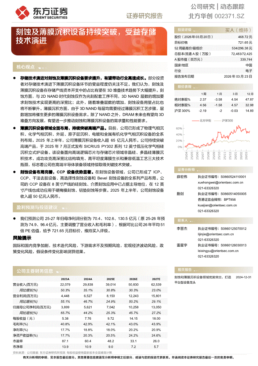 北方华创:东方证券-北方华创-002371-刻蚀及薄膜沉积设备持续突破,受益存储技术演进-260323