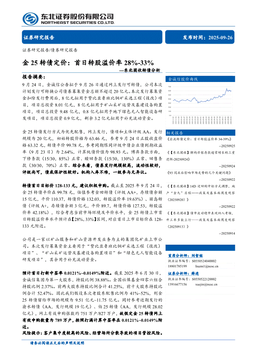东北证券-固收转债分析:金25转债定价,首日转股溢价率28%~33%-250926