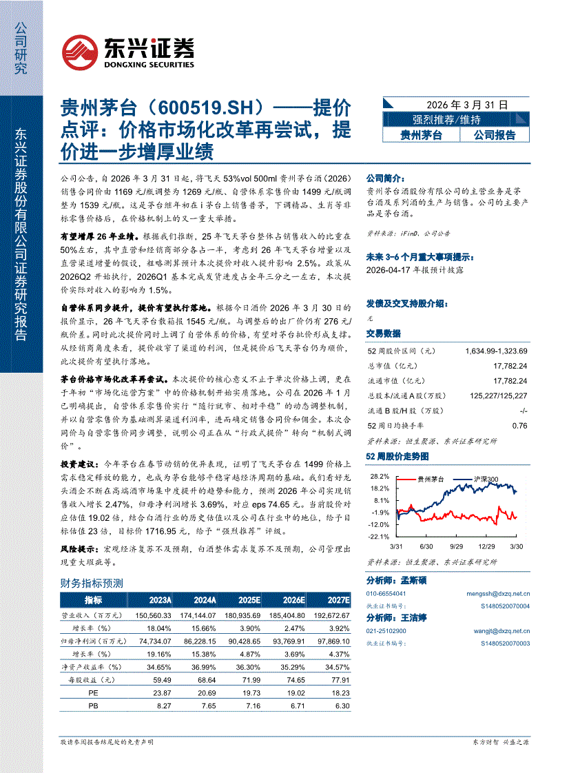 贵州茅台:东兴证券-贵州茅台-600519-提价点评:价格市场化改革再尝试,提价进一步增厚业绩-260331