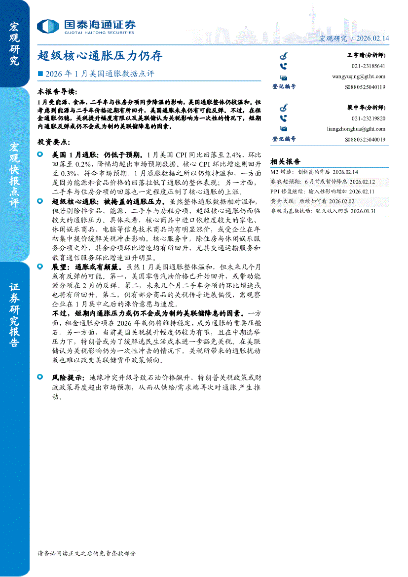 国泰海通证券-2026年1月美国通胀数据点评:超级核心通胀压力仍存-260214
