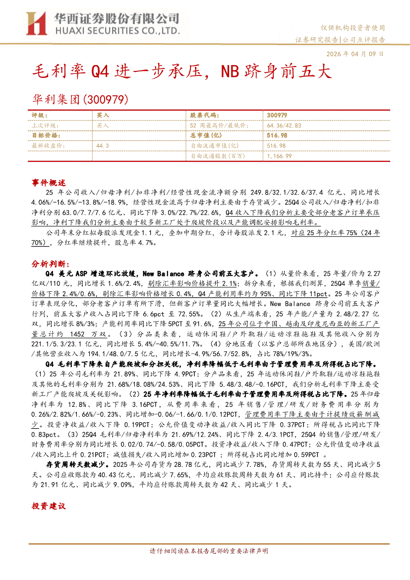 华利集团:华西证券-华利集团-300979-毛利率Q4进一步承压,NB跻身前五大-260409
