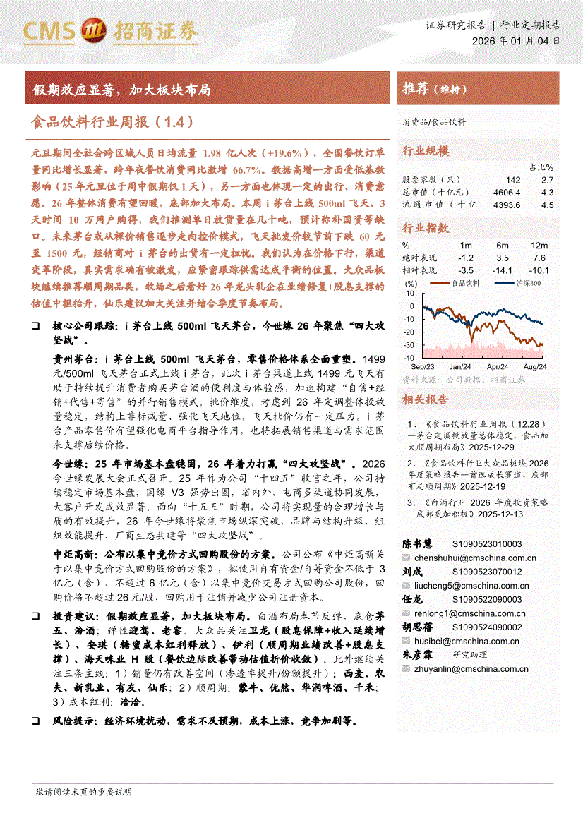 食品饮料行业:招商证券-食品饮料行业周报:假期效应显著,加大板块布局-260104
