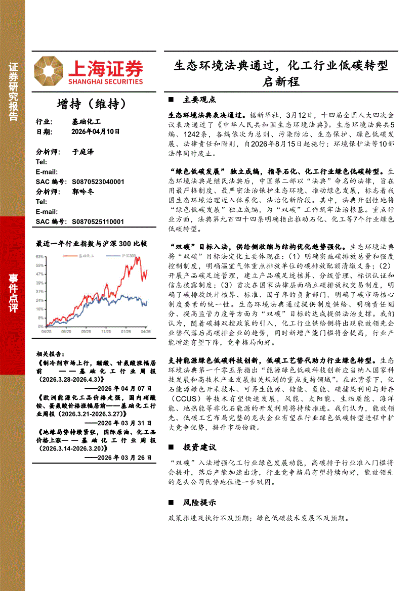 基础化工行业:上海证券-基础化工行业:生态环境法典通过,化工行业低碳转型启新程-260410