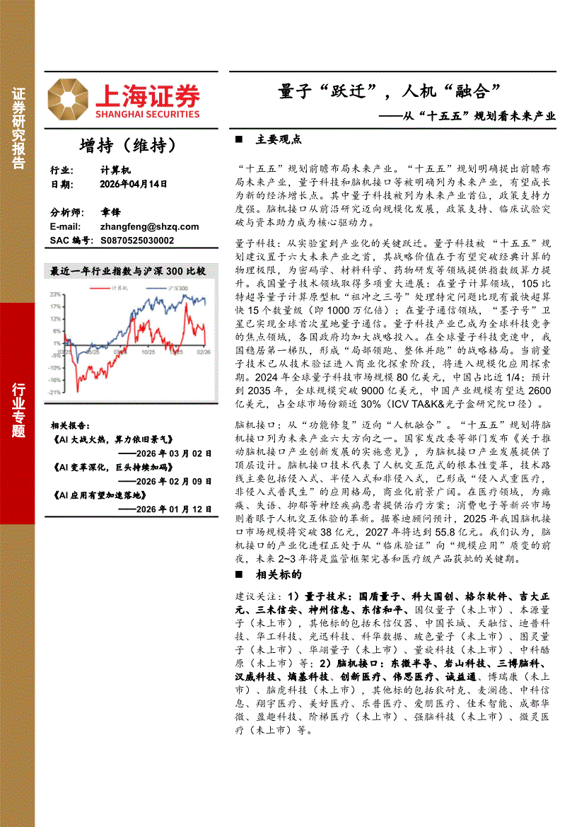 计算机行业:上海证券-计算机行业专题:从“十五五”规划看未来产业,量子“跃迁”,人机“融合”-260414
