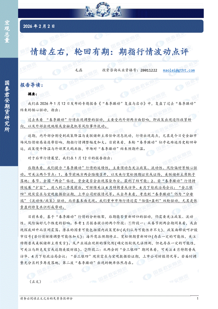 国泰君安期货-情绪左右,轮回有期:期指行情波动点评-260202