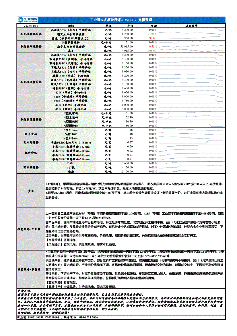 宏源期货-工业硅&多晶硅日评:宽幅整理-251211