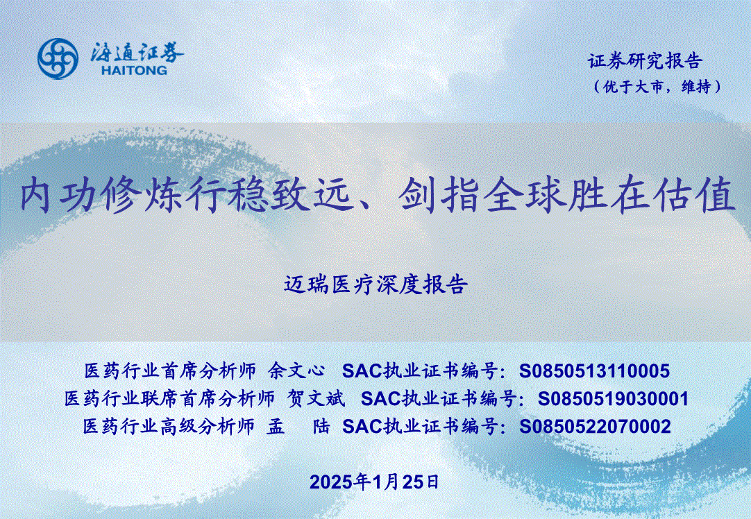 迈瑞医疗:海通证券-迈瑞医疗-300760-深度报告:内功修炼行稳致远、剑指全球胜在估值-250125