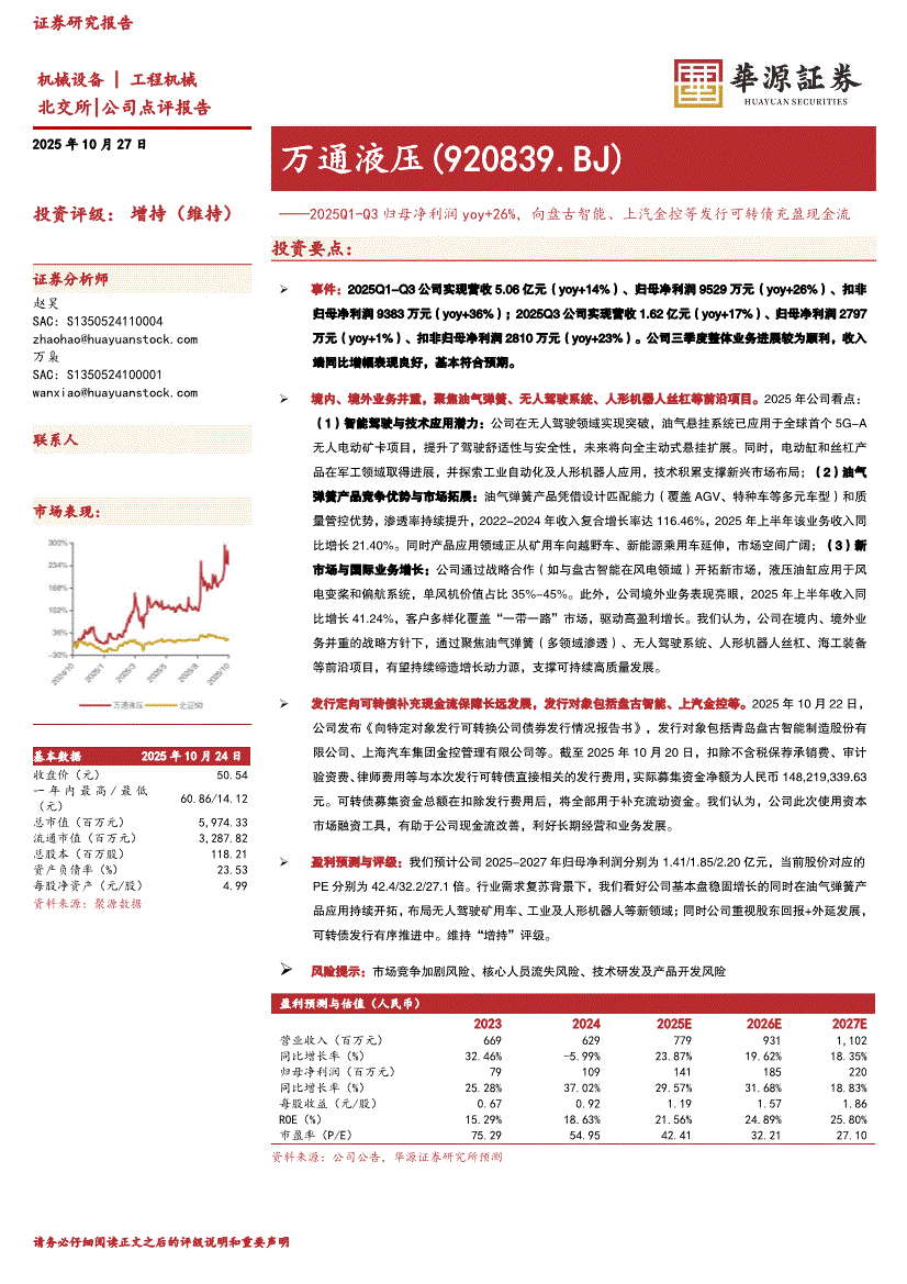万通液压:华源证券-万通液压-920839-2025Q1~Q3归母净利润yoy+26%,向盘古智能、上汽金控等发行可转债充盈现金流-251027