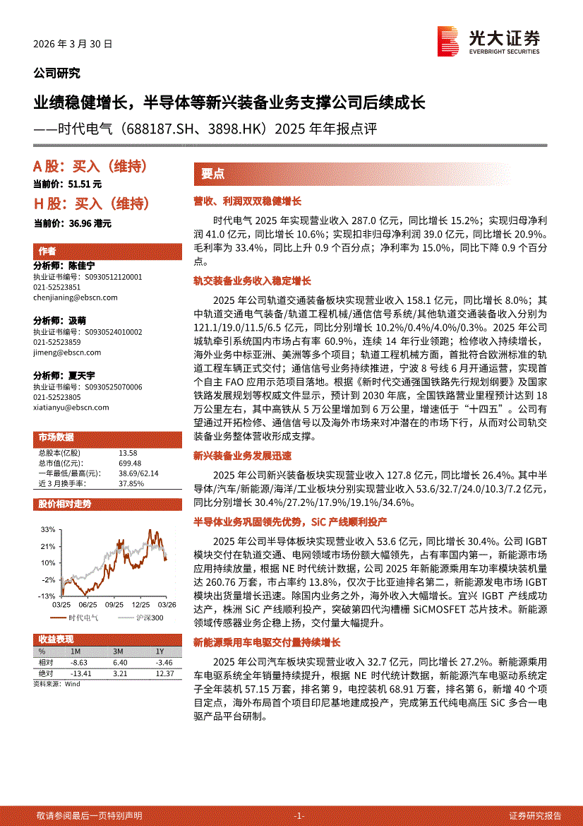 时代电气:光大证券-时代电气-688187-2025年年报点评:业绩稳健增长,半导体等新兴装备业务支撑公司后续成长-260330