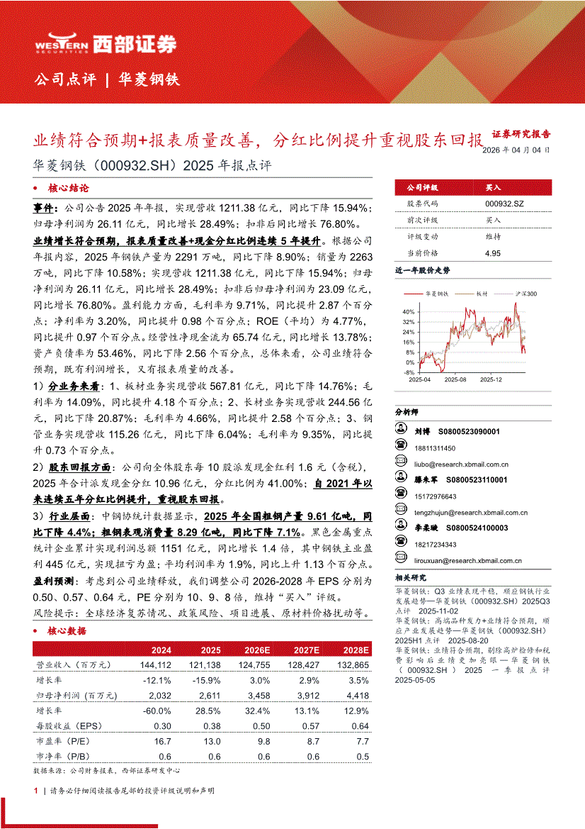 华菱钢铁:西部证券-华菱钢铁-000932-2025年报点评:业绩符合预期+报表质量改善,分红比例提升重视股东回报-260404