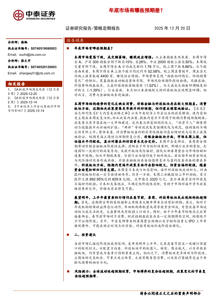 中泰证券-年底市场有哪些预期差?-251220