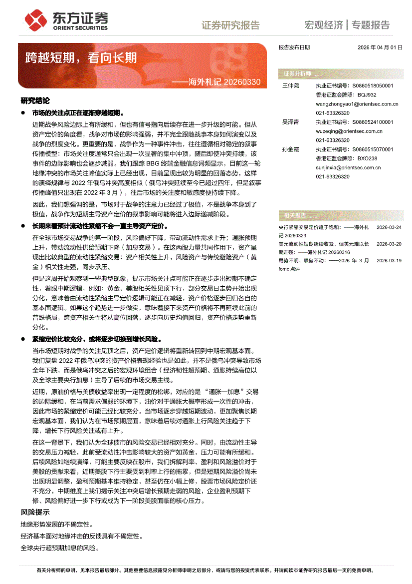 东方证券-宏观周观点:预期扰动从短期转向中长期-260330