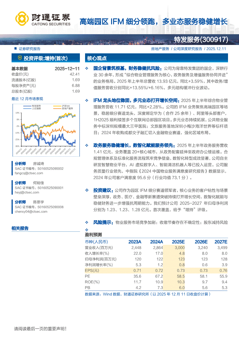 特发服务:财通证券-特发服务-300917-高端园区IFM细分领跑,多业态服务稳健增长-251211