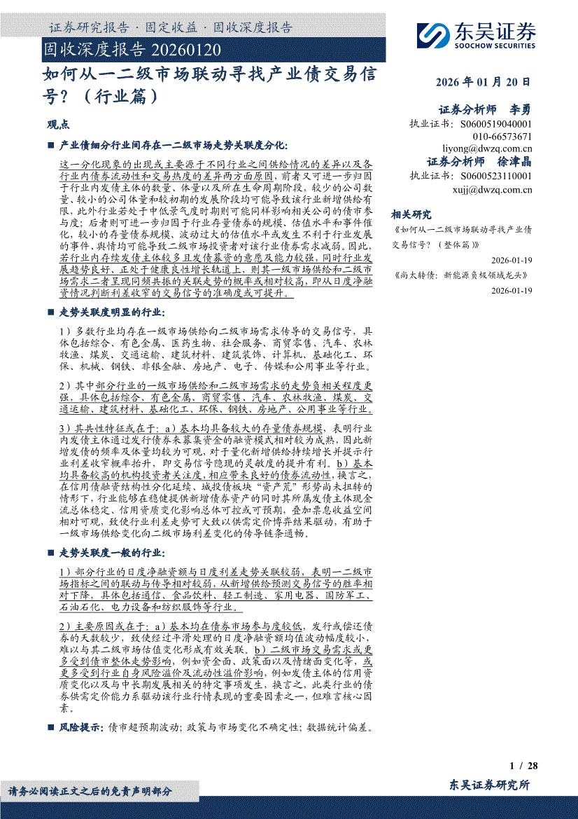 东吴证券-固收深度报告:如何从一二级市场联动寻找产业债交易信号?(行业篇)-260120