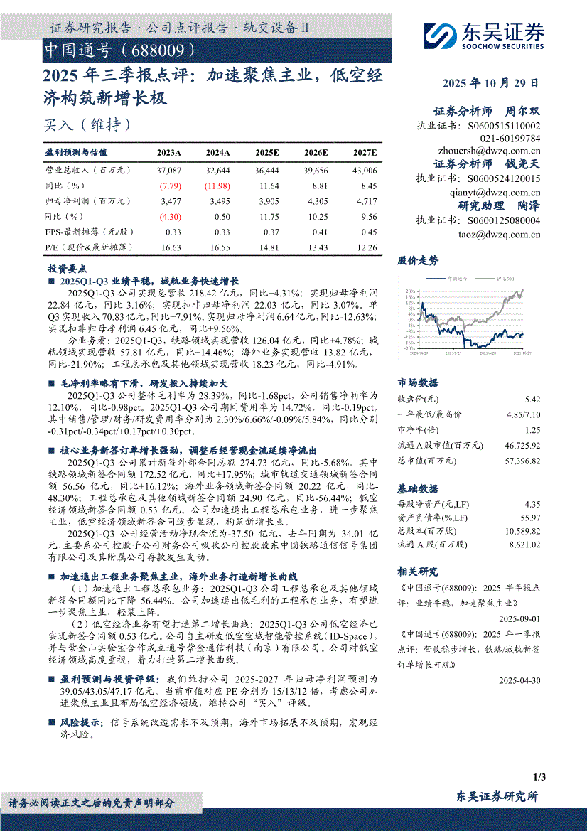 中国通号:东吴证券-中国通号-688009-2025年三季报点评:加速聚焦主业,低空经济构筑新增长极-251029
