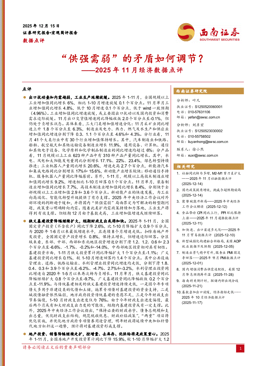 西南证券-2025年11月经济数据点评:“供强需弱”的矛盾如何调节?-251215