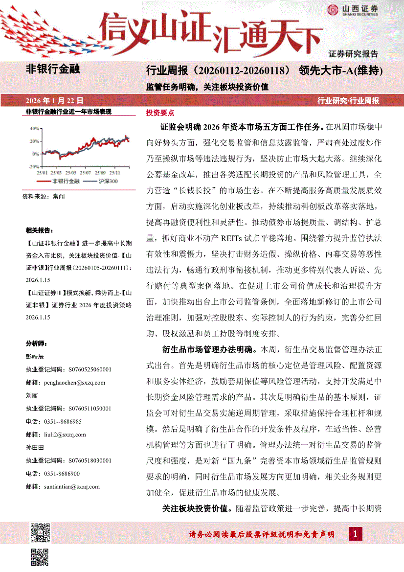非银行金融行业:山西证券-非银行金融行业周报:监管任务明确,关注板块投资价值-260122