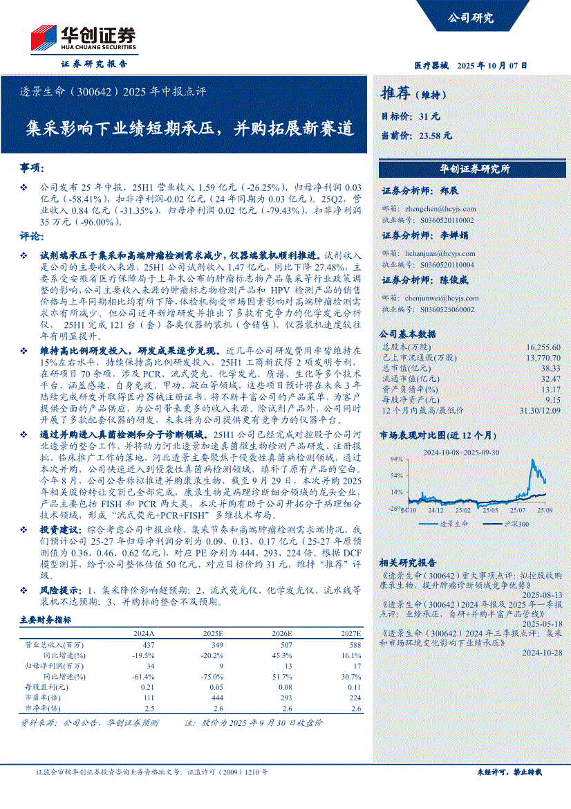 透景生命:华创证券-透景生命-300642-2025年中报点评:集采影响下业绩短期承压,并购拓展新赛道-251007