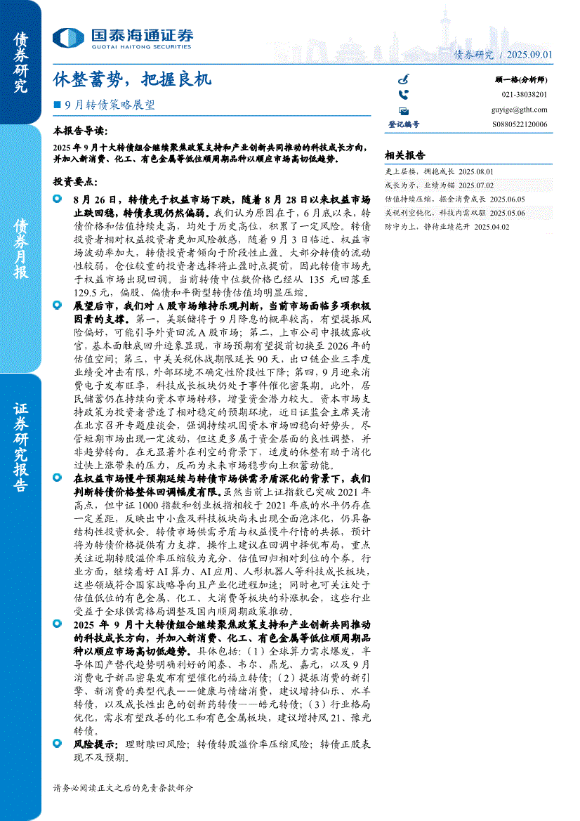 国泰海通证券-9月转债策略展望:休整蓄势,把握良机-250901