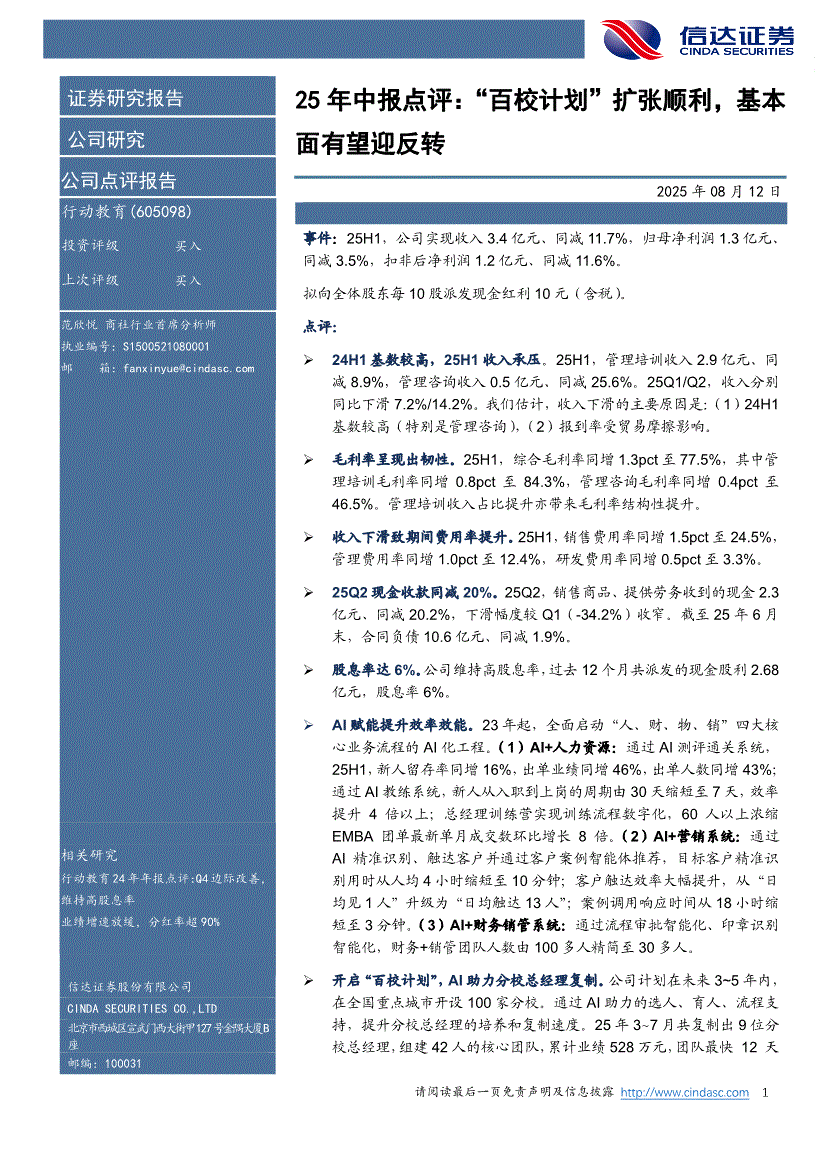 行动教育:信达证券-行动教育-605098-25年中报点评:“百校计划”扩张顺利,基本面有望迎反转-250812