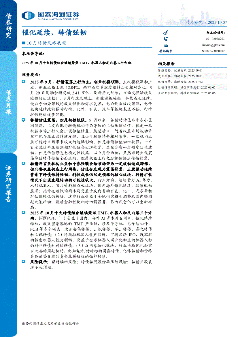 国泰海通证券-10月转债策略展望:催化延续,转债强韧-251007