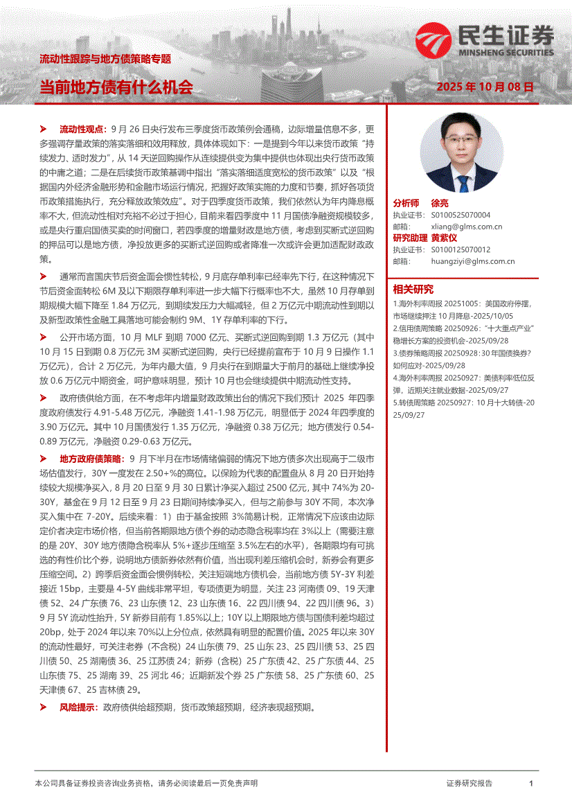 民生证券-流动性跟踪与地方债策略专题:当前地方债有什么机会-251008