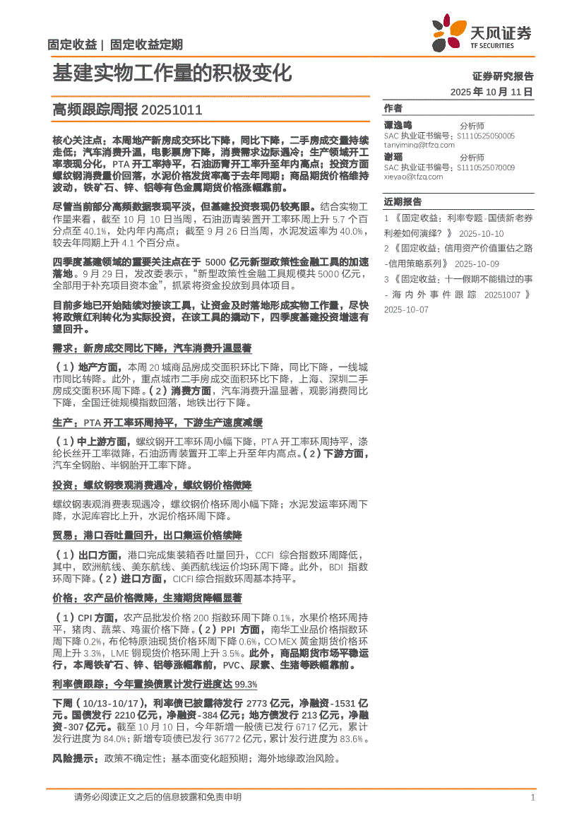 天风证券-高频跟踪周报:基建实物工作量的积极变化-251011