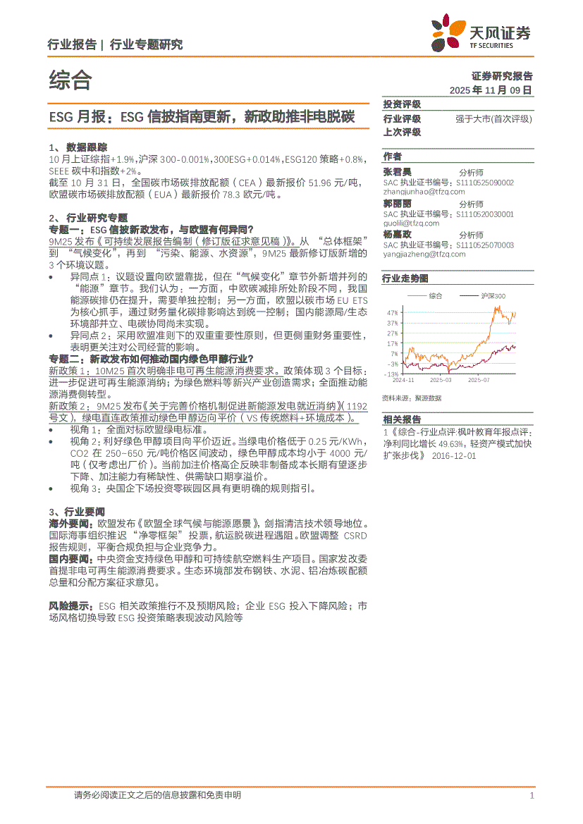 天风证券-ESG月报:ESG信披指南更新,新政助推非电脱碳-251109