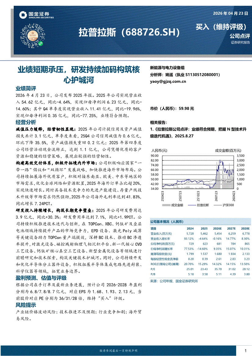 拉普拉斯:国金证券-拉普拉斯-688726-业绩短期承压,研发持续加码构筑核心护城河-260423