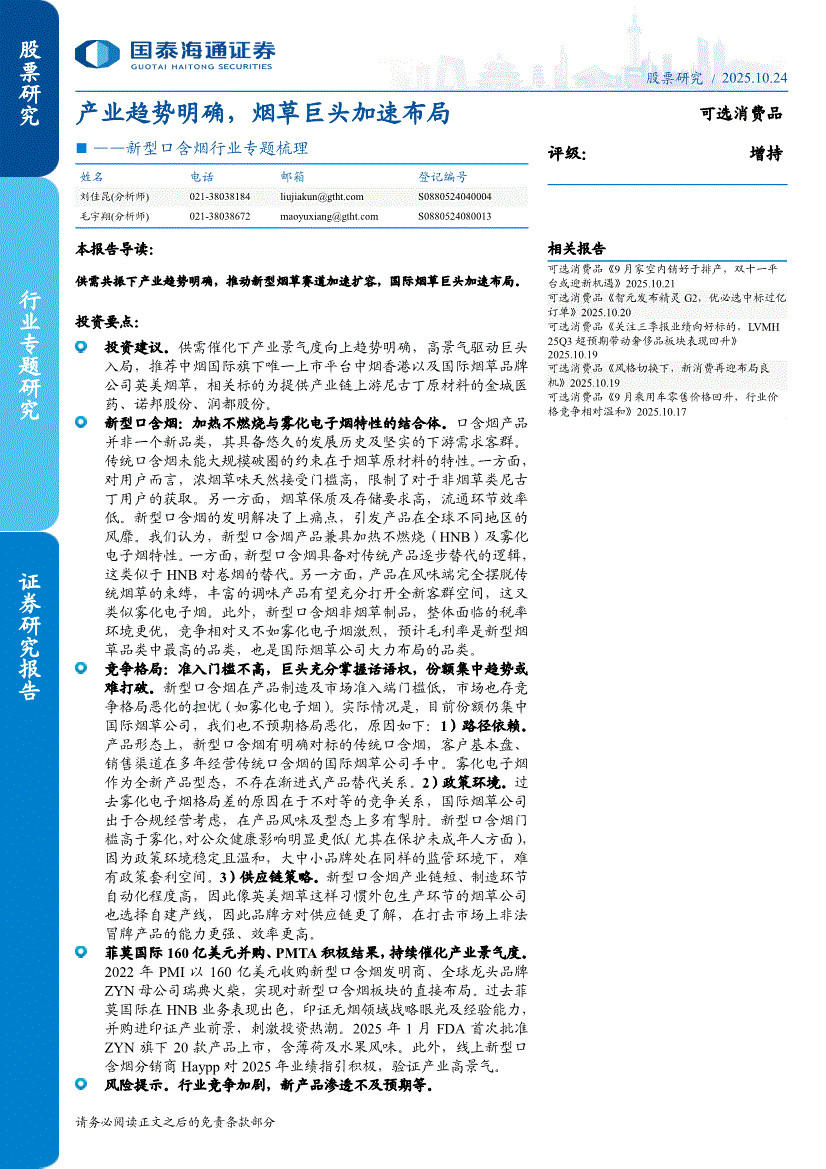 新型口含烟行业:国泰海通证券-新型口含烟行业专题梳理:产业趋势明确,烟草巨头加速布局-251024