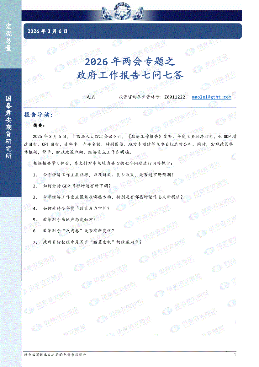 国泰君安期货-2026年两会专题之政府工作报告七问七答-260306