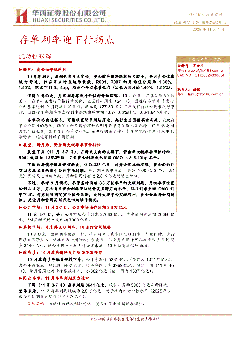 华西证券-流动性跟踪:存单利率迎下行拐点-251101