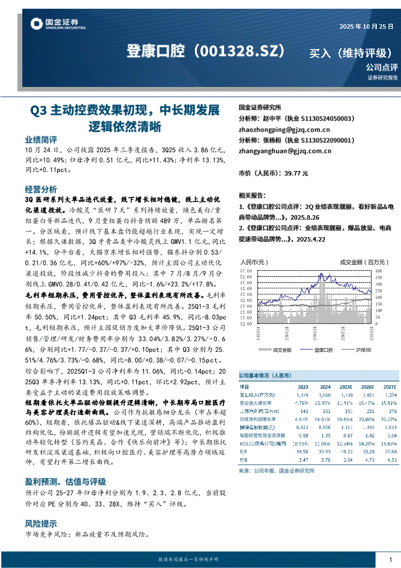 登康口腔:国金证券-登康口腔-001328-Q3主动控费效果初现,中长期发展逻辑依然清晰-251025