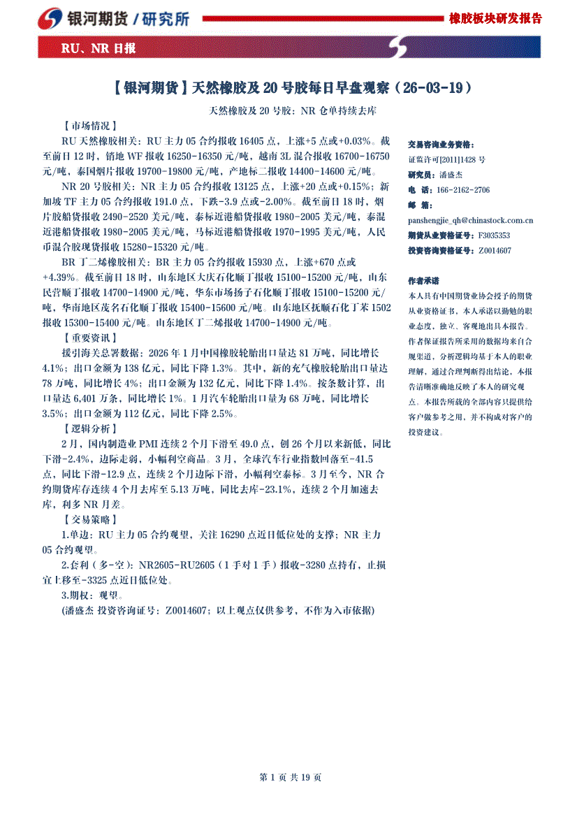 银河期货-天然橡胶及20号胶每日早盘观察-260319